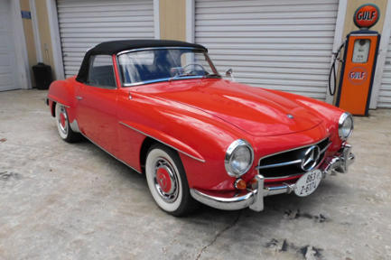 1963 190 SL Built late 1962 finished in 534 fire engine red over black leather with a black German canvas soft top. Chassis number 121 042 10 024099/Engine number 121 921 10 019737. Long term owership since 1976. Same owner for 46 years. Older restoration including engine rebuild and a restored hard top finished in white. This vehicle has been meticulously maontained for the last 46 years. Runs great and looks great. It is ready to be enjoyed.